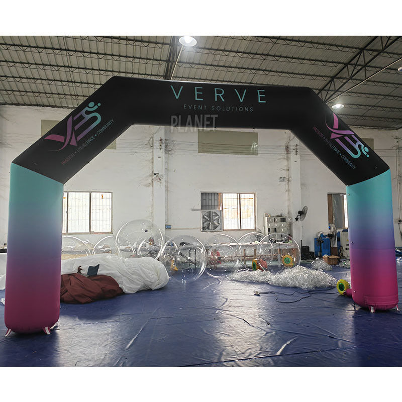 The inflatable arch is a vibrant and eye-catching structure designed for various purposes, including advertising, marking event entrances, or enhancing the ambiance of celebrations. Typically crafted from durable materials like PVC or nylon, these arches are inflated using air blowers, which give them their distinctive shape. They often feature customizable elements such as size, shape, colors, logos, and graphics, making them versatile for a wide range of events and promotional campaigns.